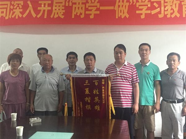 7月10日上午,界首市公司幫扶結(jié)對(duì)及秸稈禁燒工作責(zé)任區(qū)的界首市光武鎮(zhèn)李廟王行政村兩委一行8人,為界首市公司送來(lái)一面上書“百姓英雄 三夏楷?!钡腻\旗。