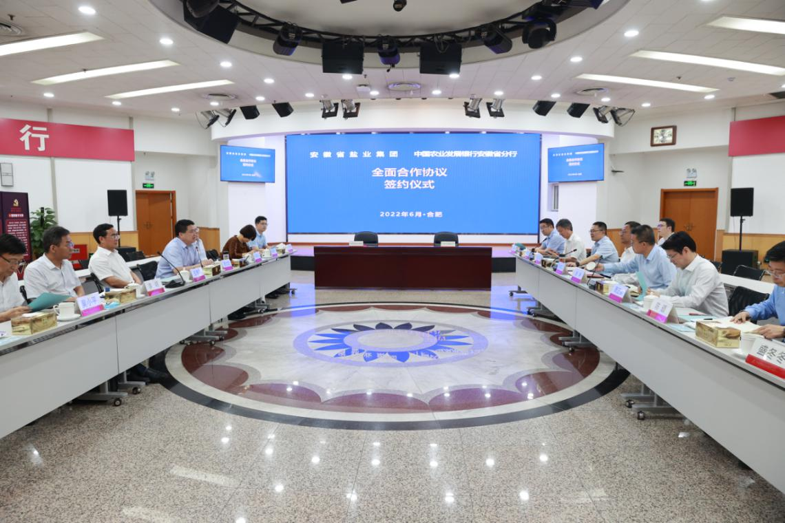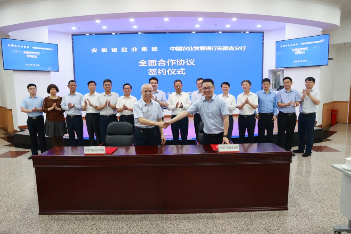 省鹽業(yè)集團公司總會計師李明,農(nóng)發(fā)行安徽省分行黨委委員、副行長侯崢,以及雙方有關(guān)部門負責(zé)同志參加簽約儀式。