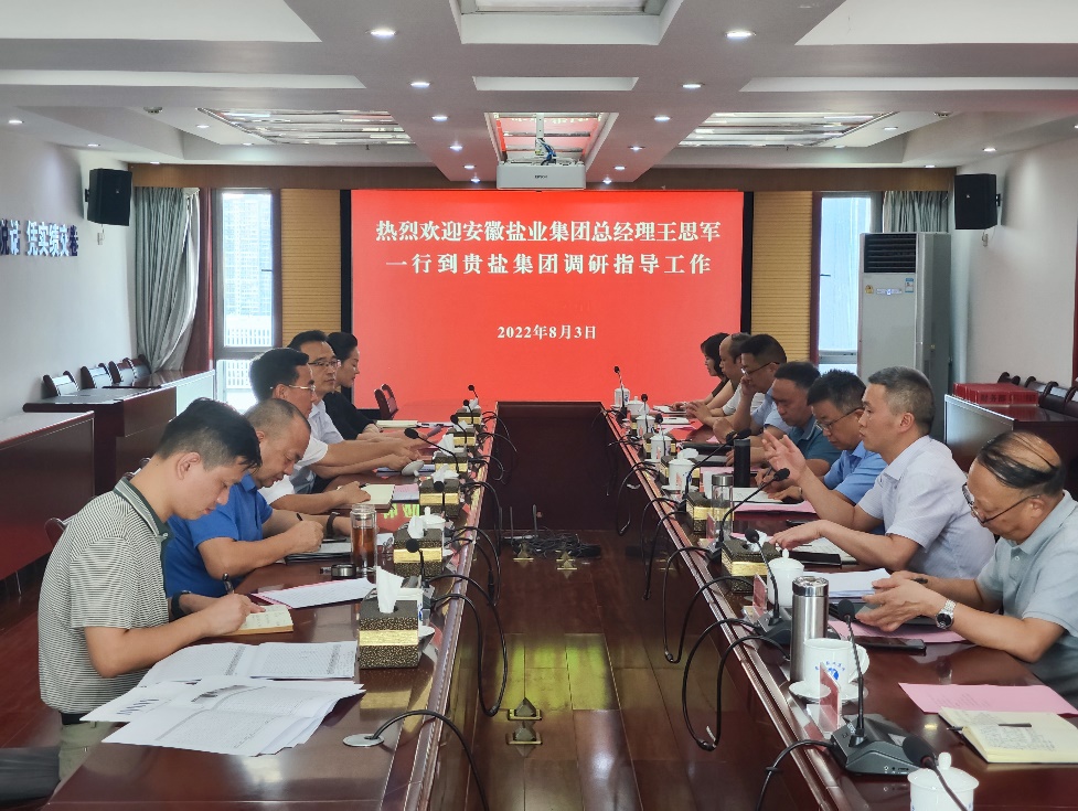 8月3日,王思軍一行拜訪了貴鹽集團(tuán),并與貴鹽集團(tuán)黨委書(shū)記、董事長(zhǎng)任建生,黨委副書(shū)記、副董事長(zhǎng)、總經(jīng)理梅桂等座談交流。期間,王思軍介紹了省鹽業(yè)集團(tuán)的經(jīng)營(yíng)與改革發(fā)展等情況,并重點(diǎn)介紹了發(fā)展生態(tài)環(huán)保以及健康養(yǎng)老等新興產(chǎn)業(yè)的做法,表達(dá)了在環(huán)保治污、健康養(yǎng)老、鄉(xiāng)村振興以及現(xiàn)代農(nóng)業(yè)等領(lǐng)域進(jìn)一步加強(qiáng)合作的意愿。王奇介紹了鹽改以來(lái)在穩(wěn)市場(chǎng)、調(diào)結(jié)構(gòu)、促轉(zhuǎn)型等方面的經(jīng)驗(yàn)和做法。任建生對(duì)省鹽業(yè)集團(tuán)近年來(lái)在推動(dòng)改革轉(zhuǎn)型方面的嘗試表示了敬佩,認(rèn)為有很多值得學(xué)習(xí)的地方,并表示希望雙方進(jìn)一步加強(qiáng)了解,互通有無(wú),加快推動(dòng)合作落地。