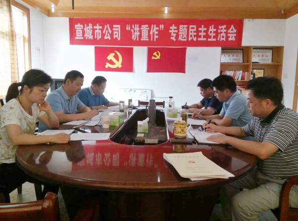 會議首先匯報了宣城市公司召開此次“講重作”專題民主生活會會議前期做的準備工作。隨后,曹明新代表領(lǐng)導(dǎo)班子作對照檢查,并帶頭作個人對照檢查發(fā)言。其他班子成員也都相繼發(fā)言,對照《準則》、《條例》,結(jié)合“陳、楊、周”等嚴重違紀違法案件,聯(lián)系自身實際,深入查找問題,深刻剖析根源,講問題不避重就輕,找原因深挖根源,觸及靈魂。在開展批評時。大家開門見山,嚴肅認真,辣味十足,批評他人時,批評意見見筋見骨,直擊要害,氣氛和諧,坦誠相見,達到了互幫互助的預(yù)期效果。