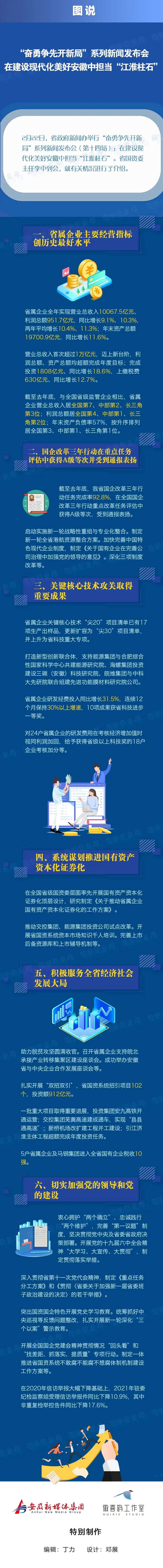 近年來,我省國企改革重點任務落地取得顯著成效。比如馬鋼通過戰(zhàn)略重組,去年營業(yè)收入和利潤總額均創(chuàng)歷史新高,鋼鐵主業(yè)闊步邁入寶武系千億營收、百億利潤企業(yè)行列。江汽集團在與大眾集團戰(zhàn)略合作中對標提升,全年累計銷量達到52.4萬輛,同比增長15.63%,遠高于行業(yè)水平;安徽大眾新能源生產(chǎn)基地建設順利推進,將于今年9月份實現(xiàn)新車下線。港航集團經(jīng)過資源整合,新增四級以上高等級航道里程577公里,全省高等級航道里程位居全國第五、長三角第二,去年營業(yè)收入、利潤總額同比增幅分別達39.6%、36.4%。