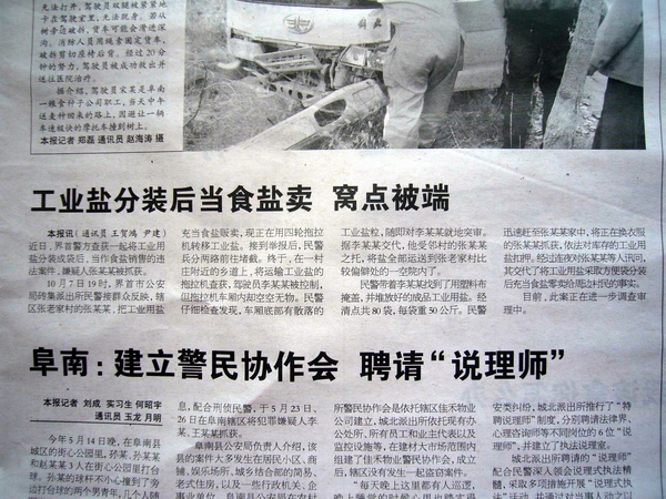 10月7日19時(shí),界首市公安局磚集派出所民警接群眾反映,轄區(qū)張老家村的張某某,把工業(yè)用鹽充當(dāng)食鹽販賣(mài),現(xiàn)正在用四輪拖拉機(jī)轉(zhuǎn)移工業(yè)鹽。接到舉報(bào)后,民警兵分兩路前往堵截。終于,在一村莊附近的鄉(xiāng)道上,將運(yùn)輸工業(yè)鹽的拖拉機(jī)查獲,駕駛員李某某被控制,但拖拉機(jī)車(chē)廂內(nèi)卻空空無(wú)物。民警仔細(xì)檢查發(fā)現(xiàn),車(chē)廂底部有散落的工業(yè)鹽粒,隨即對(duì)李某某就地突審。據(jù)李某某交代,他受鄰村的張某某之托,將鹽全部運(yùn)送到張老家村比較偏僻處的一空院內(nèi)了。