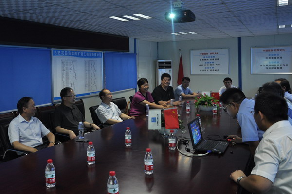 詹先豪一行聽取中建八局項目經(jīng)理就有關(guān)工程進(jìn)度匯報