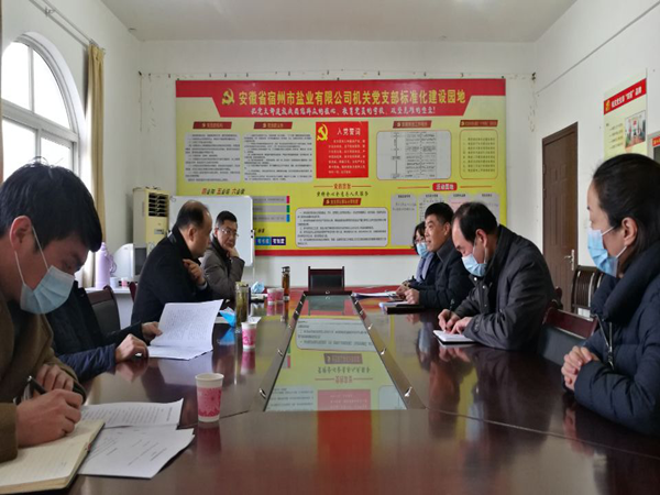 宿州市鹽業(yè)公司總支書記、經(jīng)理陳勇匯報(bào)了宿州鹽業(yè)基本情況和各項(xiàng)工作。祖鈞公對(duì)宿州市鹽業(yè)改革后取得的各項(xiàng)成績(jī)予以了高度肯定。他指出,宿州鹽業(yè)要繼續(xù)做好2021年食鹽供應(yīng)工作,做好食鹽儲(chǔ)備的同時(shí)抓好疫情防護(hù)。他還要求經(jīng)信局要協(xié)調(diào)相關(guān)部門,加大市場(chǎng)監(jiān)管力度,齊抓共管,共同維護(hù)好鹽業(yè)市場(chǎng),讓市民吃上放心食鹽。