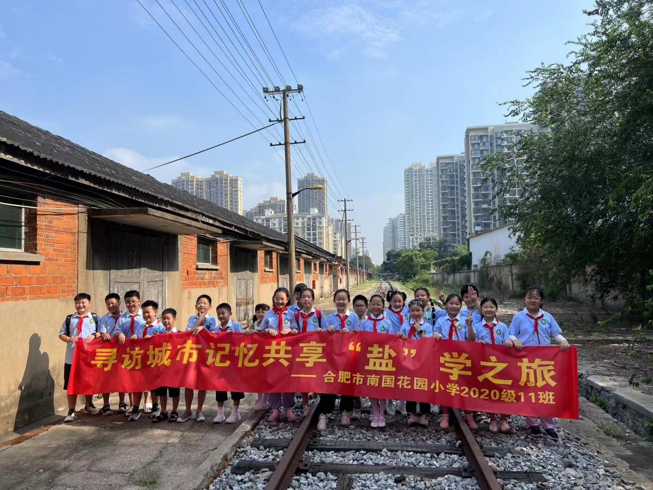 在鐵路專用線,同學(xué)們聽老師講解,知道合肥人吃的鹽都從哪里來,了解鐵路專用線的建造和停用背景。