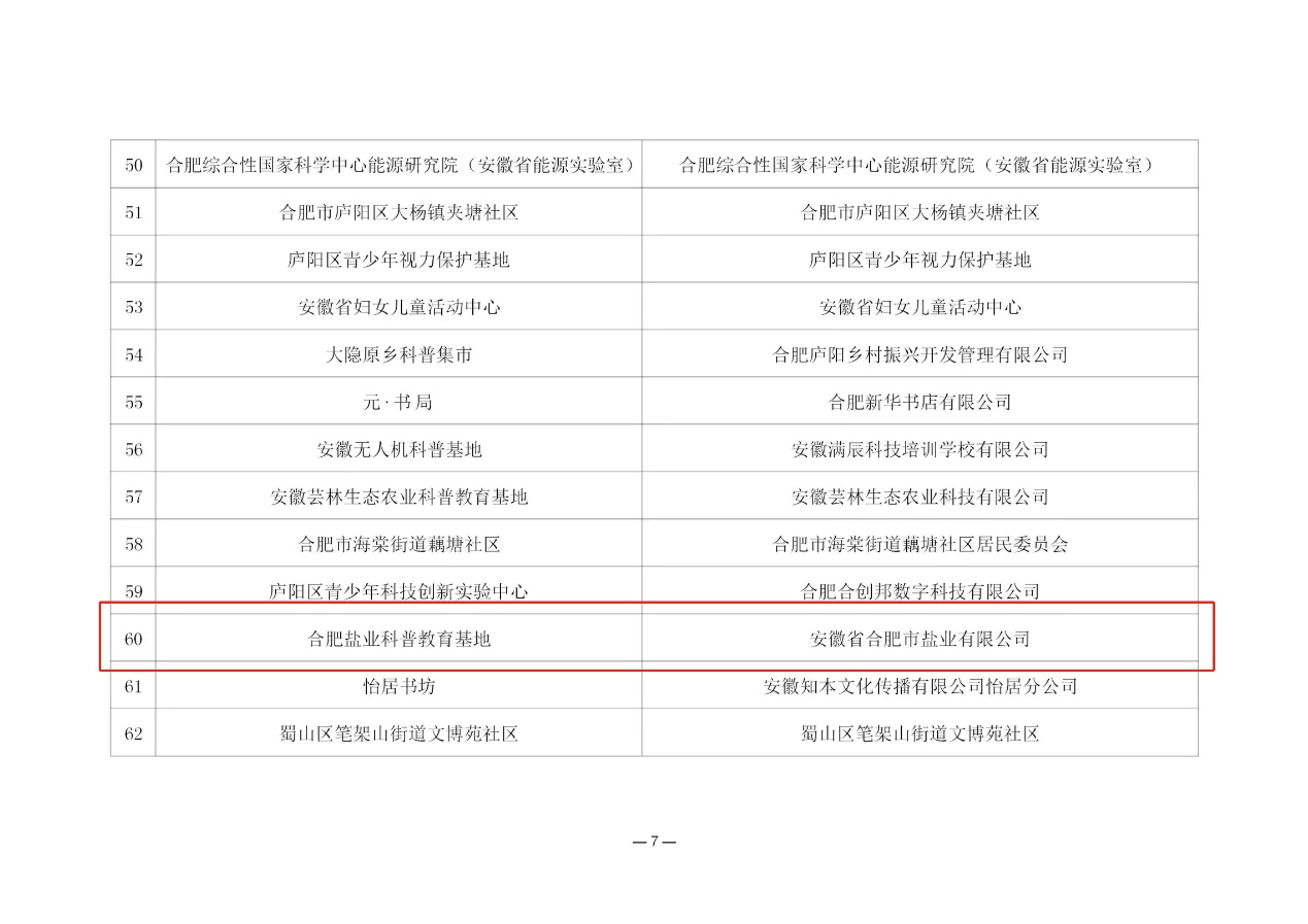 9月21日,合肥市科學技術協(xié)會經各地各單位申報推薦、評審、驗收、公示等程序,正式發(fā)文公布命名合肥鹽業(yè)等126家場館為“2023-2026年度合肥市科普教育基地”。