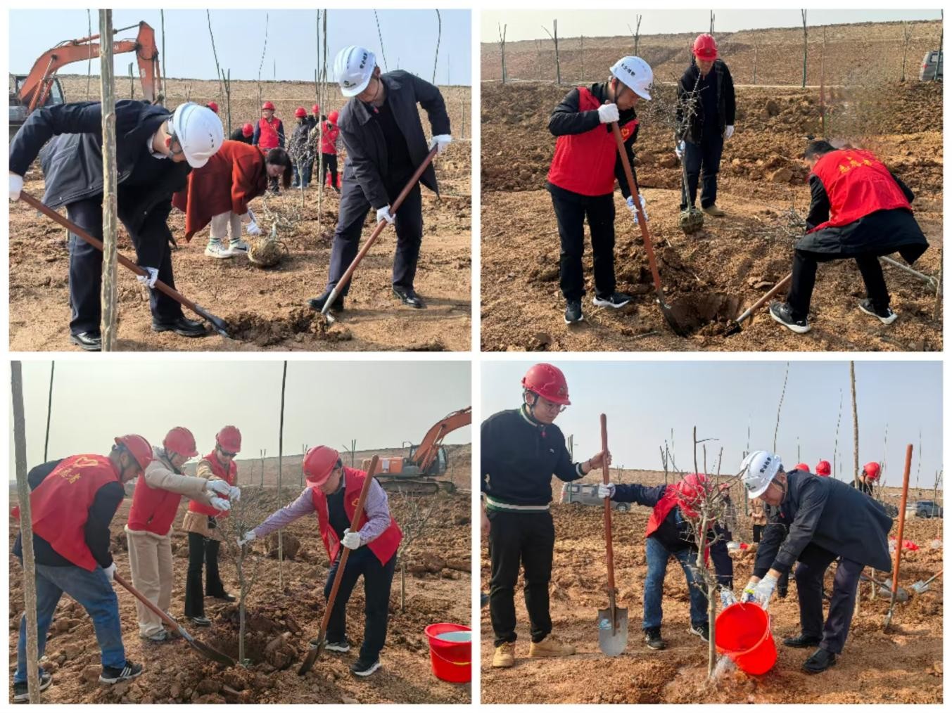 全體人員到達(dá)植樹(shù)地點(diǎn)后,拿起工具熱情高漲地投入到植樹(shù)活動(dòng)中。活動(dòng)現(xiàn)場(chǎng),大家分工協(xié)作,揮鍬培土、扶苗填坑、澆水灌溉,配合默契,干勁十足,有條不紊地將樹(shù)苗植入土中。為了提高樹(shù)苗的存活率,大家細(xì)心地用鐵鍬一點(diǎn)點(diǎn)鏟碎結(jié)塊的土壤,用細(xì)節(jié)傳承國(guó)企品質(zhì)。經(jīng)過(guò)大家的辛勤勞動(dòng),一棵棵新栽的樹(shù)苗迎風(fēng)挺立,萌發(fā)盎然生機(jī),與施工現(xiàn)場(chǎng)的機(jī)械轟鳴聲交相輝映,勾勒出一幅“綠色與建設(shè)共生”的生動(dòng)畫面。