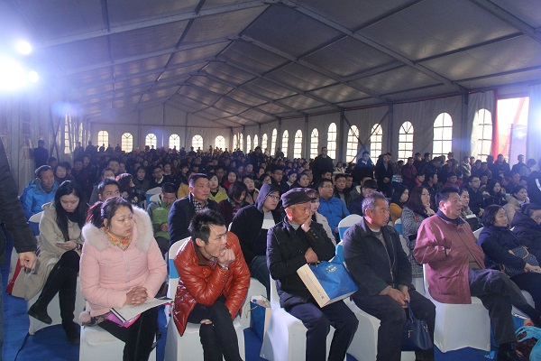 開盤當(dāng)日,客戶車輛在引導(dǎo)員指引下魚貫而入??拷值纼膳耘牌饤l條長龍,活動帳篷內(nèi)更是人頭攢動,座無虛席,場面十分火爆。本期產(chǎn)品繼續(xù)采用搖號方式予以加推,在限售、限價等政策影響下,六安市場像今天這種熱銷場面已不多見。