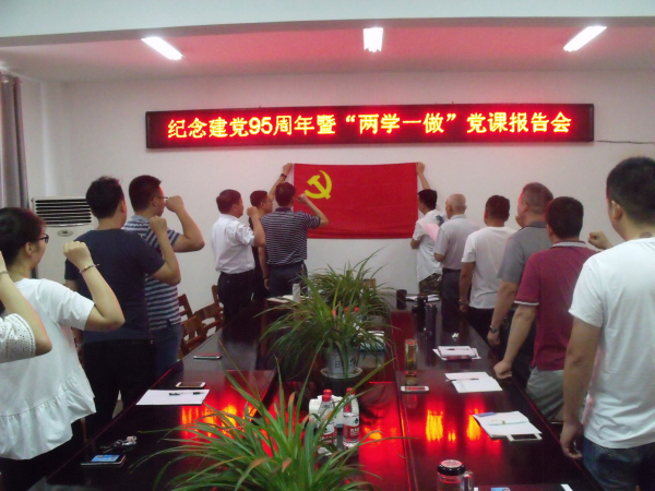 6月29日,蚌埠市公司黨委舉行了紀(jì)念建黨95周年暨“兩學(xué)一做”黨課報(bào)告會。會上,紀(jì)委書記王新進(jìn)首先帶領(lǐng)全體黨員進(jìn)行集體宣誓,重溫入黨誓詞。宣誓完畢,黨委書記邱軍給全體黨員作了題為《舉起右拳,面對鮮紅黨旗》的專題黨課,通過學(xué)習(xí)重溫建黨以來入黨誓詞的變化,使廣大黨員更加深刻理解了入黨誓詞是《中國共產(chǎn)黨章程》的重要內(nèi)容,是黨員入黨時對黨和人民作出的莊嚴(yán)政治承諾,是黨員為黨奮斗終生、獻(xiàn)身黨的事業(yè)的誓言和座右銘的重要?dú)v史和現(xiàn)實(shí)意義。邱軍要求每一位黨員要宣讀誓詞、牢記誓詞、維護(hù)誓詞、踐行誓詞,增強(qiáng)黨員意識,恪守承諾,守規(guī)履責(zé),在思想、政治、行動上做一名真正合格的黨員,立足崗位,充分發(fā)揮先鋒模范作用。