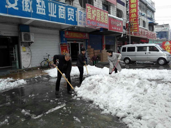 下午黨支部組織黨員干部及職工進(jìn)行義務(wù)除雪勞動(dòng)。不但鏟除公司門(mén)前的積雪,還進(jìn)行漕沖糖酒城市場(chǎng)路面積雪清除,以培養(yǎng)黨員的宗旨意識(shí)和奉獻(xiàn)精神。