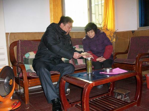 在慰問身患尿毒癥的退休干部張炎祥時(shí),檀經(jīng)理握著老人的手,仔細(xì)詢問著他的病情和身體情況。檀經(jīng)理說,前幾天市公司周閩經(jīng)理剛剛上任就到望江來調(diào)研和慰問,給您老帶來了省、市公司的關(guān)懷和幫助。今天我們剛從縣總工會(huì)領(lǐng)到了為您爭(zhēng)取的大病救助金,這個(gè)救助金額是今年縣總工會(huì)發(fā)放的最高標(biāo)準(zhǔn),此外,單位也經(jīng)研究給發(fā)放了您一些救助金,希望您安心養(yǎng)病,安享晚年。張老激動(dòng)地握住檀經(jīng)理的手,不住地感謝組織和領(lǐng)導(dǎo)的關(guān)懷。