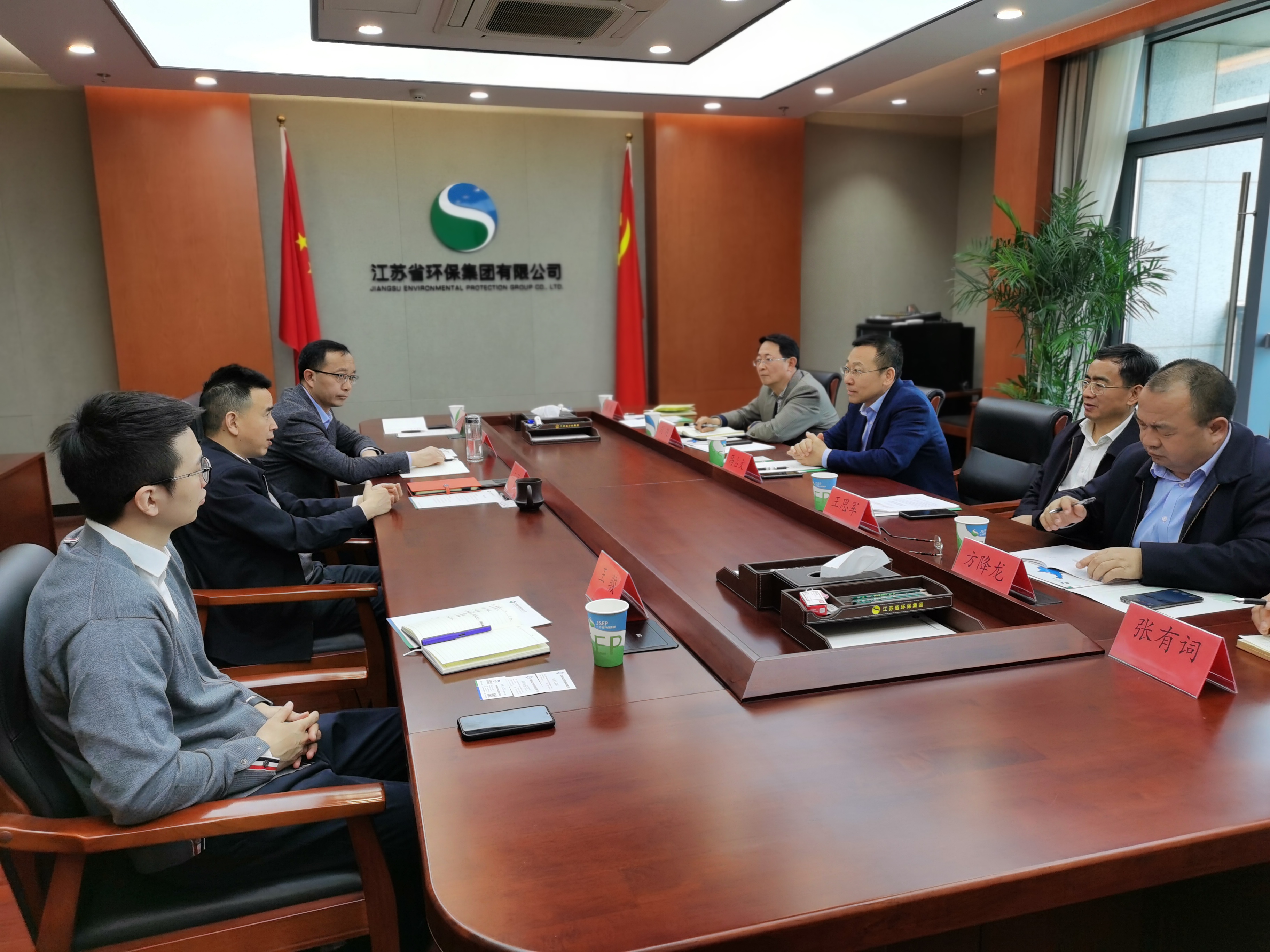 (上圖為集團(tuán)領(lǐng)導(dǎo)赴江蘇省環(huán)保集團(tuán)考察調(diào)研)