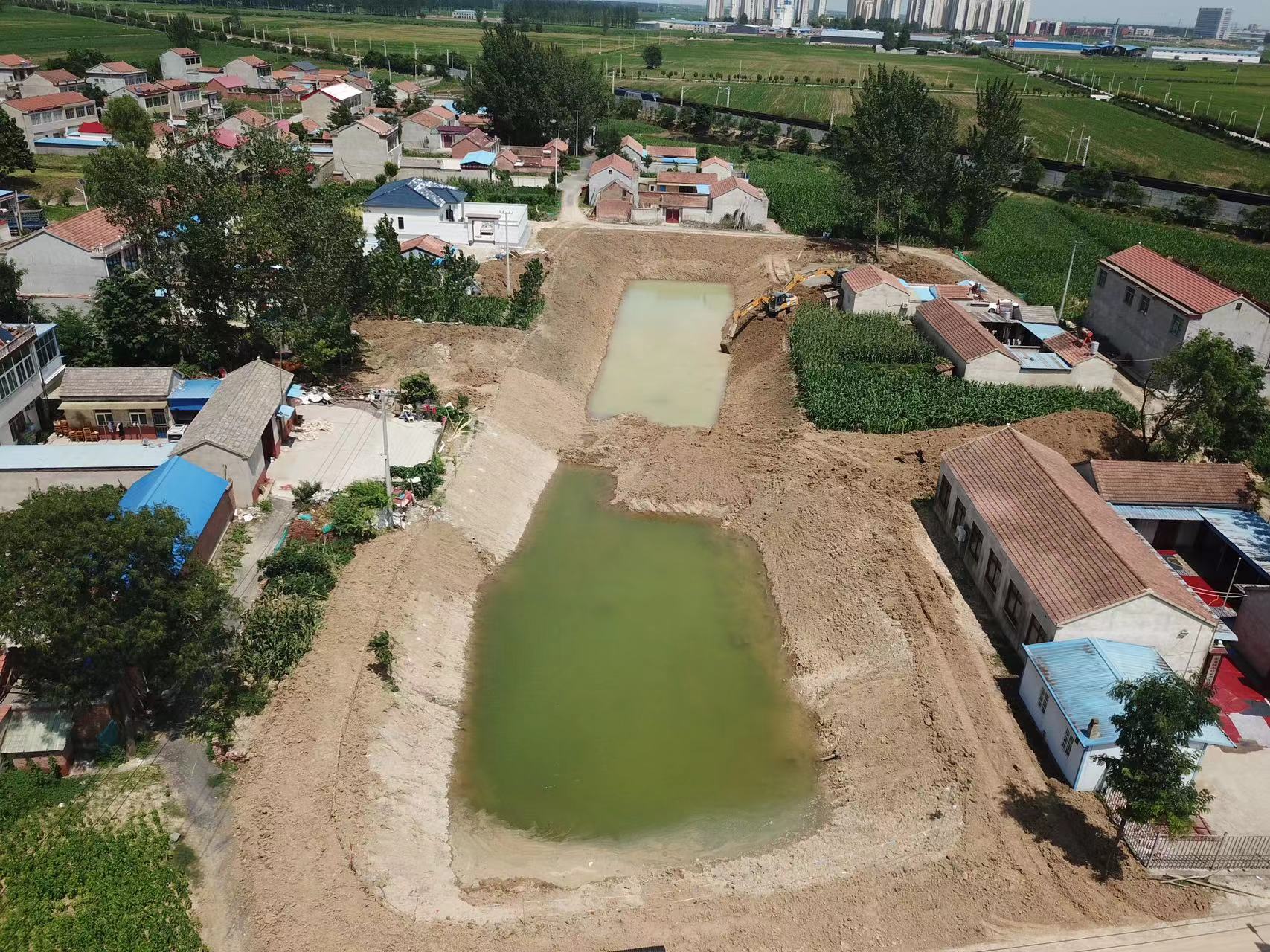 環(huán)境科技集團(tuán)為改善這一現(xiàn)狀,提升村民幸福感,自主設(shè)計(jì)生態(tài)修復(fù)、內(nèi)源治理等治理方案。通過(guò)清淤、清雜、清垃圾、邊坡修整,塘中放置人工浮島(種植水芹),邊坡采用植物護(hù)坡等措施,致力于把黑臭坑塘建成水清、岸綠、景美村民休閑娛樂(lè)的好地方,成為全縣名副其實(shí)的黑臭水體治理示范點(diǎn)。該項(xiàng)目于7月8日進(jìn)場(chǎng)施工,受近期當(dāng)?shù)貜?qiáng)降雨影響,截止到7月23日,形象進(jìn)度約完成60%,水體內(nèi)源治理、邊坡修整及排水渠建設(shè)完成70%。