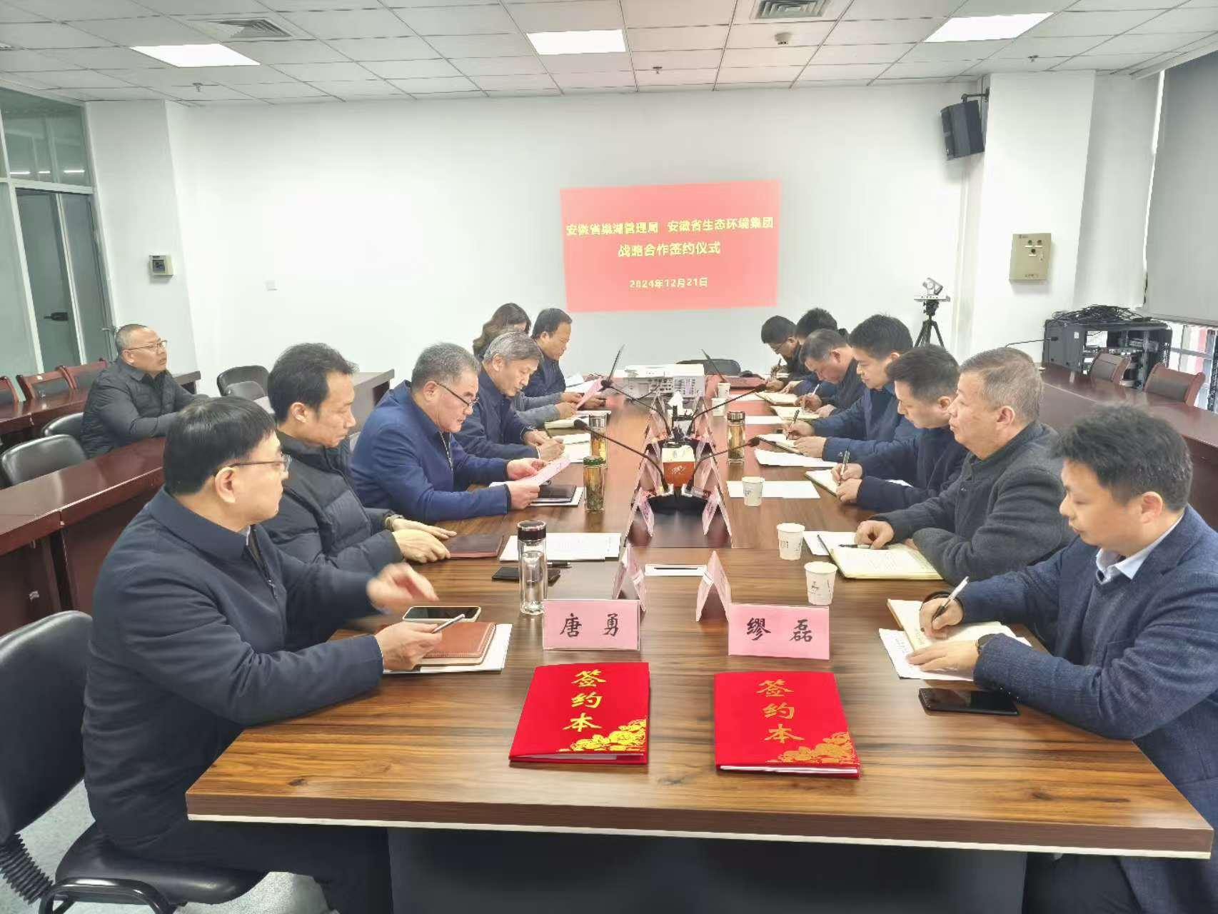 集團(tuán)公司黨委委員、副總經(jīng)理繆磊,省巢湖管理局黨委委員、副局長唐勇代表雙方簽訂戰(zhàn)略合作協(xié)議,環(huán)境科技集團(tuán)、生態(tài)修復(fù)公司以及雙方有關(guān)部門負(fù)責(zé)同志參加簽約儀式。