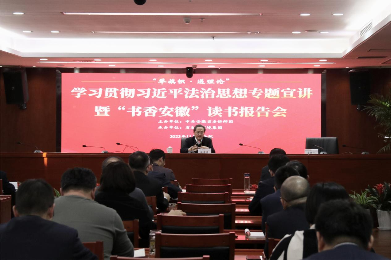 11月23日下午,省委講師團“舉旗幟·送理論”學習貫徹習近平法治思想專題宣講暨“書香安徽”讀書報告會走進省生態(tài)環(huán)境集團。報告會邀請省人民檢察院黨組成員、副檢察長、一級高級檢察官陶芳德作專題宣講報告。集團公司黨委及經(jīng)營班子成員,各直屬(控股)公司主要負責人、法務合規(guī)工作分管領導及部門負責人,集團本部中層及以上管理人員參加報告會。