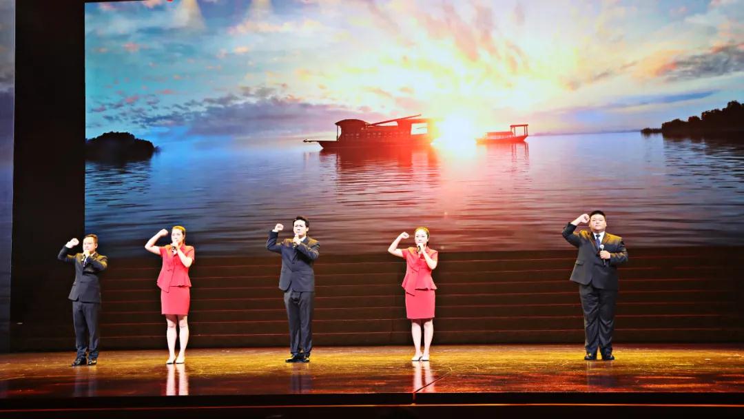 “我們在燦爛陽光下,跟著共產(chǎn)黨,建設大中國……”,氣勢恢宏的大合唱《在燦爛陽光下》拉開了匯演的序幕。音樂詩《紅船頌》、情景表演《過雪山草地》、舞蹈《映山紅》、歌舞《追尋》展現(xiàn)了中國共產(chǎn)黨人百年接續(xù)奮斗,團結帶領人民開辟偉大道路、建立偉大功業(yè)、鑄就偉大精神。舞蹈《心聲》、黃梅大鼓《光輝禮贊》、情景合唱《咱們工人有力量》、朗誦《安徽脊梁、改革遠航》、音舞踢踏快板《高質量發(fā)展新征程》、情景劇《一路有我》再現(xiàn)了省屬企業(yè)在中國共產(chǎn)黨領導下,以黨的旗幟為旗幟,以黨的方向為方向,以黨的意志為意志,矢志奮斗,堅定不移做強做優(yōu)做大國有資本和國有企業(yè),為促進全省經(jīng)濟社會持續(xù)健康發(fā)展的奮斗歷程。歌舞《我們都是追夢人》《燈火里的中國》《不忘初心》,深情表達省屬企業(yè)干部職工的使命夢想和家國情懷。演出精彩紛呈,高潮迭起,歌聲、樂聲、掌聲烘托出熱烈的喜慶氛圍。匯演在全場同唱《沒有共產(chǎn)黨就沒有新中國》歌聲中落下帷幕。