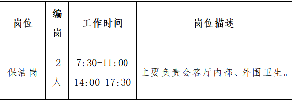 保潔崗:選派的保潔人員必須經(jīng)過(guò)專業(yè)技能培訓(xùn),身體健康,品行良好,無(wú)違法違紀(jì)犯罪前科,具有初中以上文化程度,年齡在25至45周歲、身高1.55米以上。保證城市展廳內(nèi)外部現(xiàn)場(chǎng)的衛(wèi)生環(huán)境。