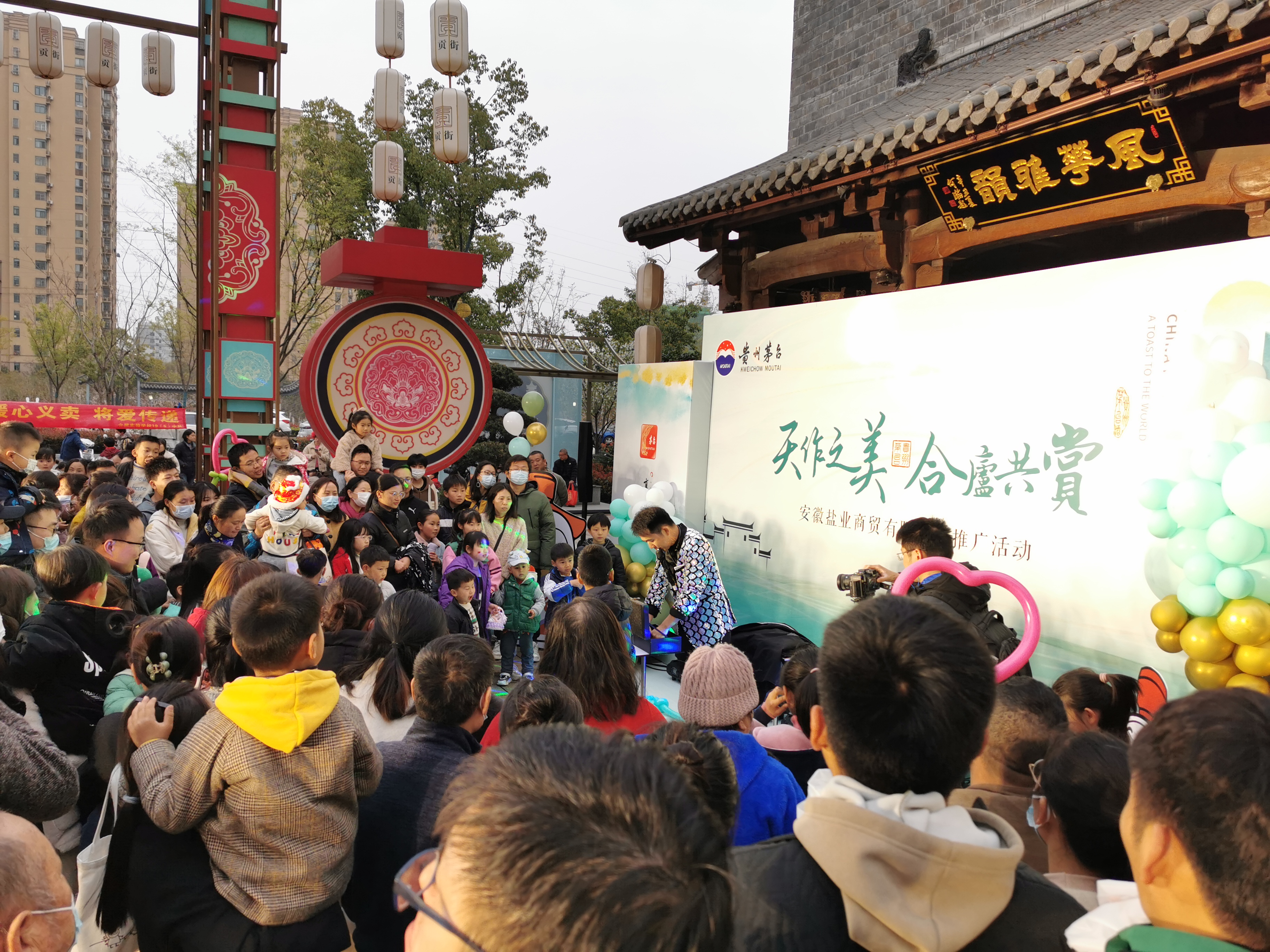 活動現(xiàn)場采用引導(dǎo)消費者下載并注冊i茅臺及巽風(fēng)APP即可參與套圈有禮游戲的活動形式,吸引消費者下載了解i茅臺及巽風(fēng)APP,并且現(xiàn)場邀請了專業(yè)的主持人及表演團隊活躍現(xiàn)場氛圍,活動現(xiàn)場人們絡(luò)繹不絕,熱情興致高漲,活動一直持續(xù)到晚上八點。