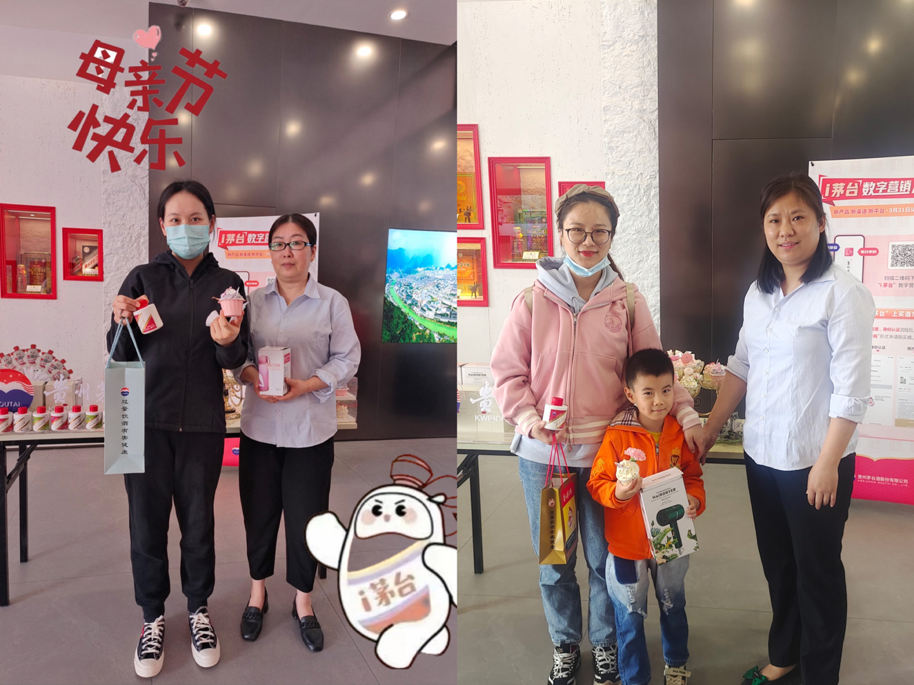 活動(dòng)期間,我們?yōu)檫M(jìn)店客戶準(zhǔn)備了精美蛋糕、水杯等,并為進(jìn)店的媽媽們贈(zèng)送一份茅臺(tái)冰淇淋,希望把最美好的祝福送給每一位女性客戶,讓她們都能感受到濃厚溫馨的節(jié)日氛圍。進(jìn)店參與活動(dòng)的每一位母親都帶著開心的笑容,在這個(gè)屬于她們的節(jié)日里,安徽鹽業(yè)商貿(mào)有限公司全體員工真誠的祝福所有母親健康快樂、青春美麗。