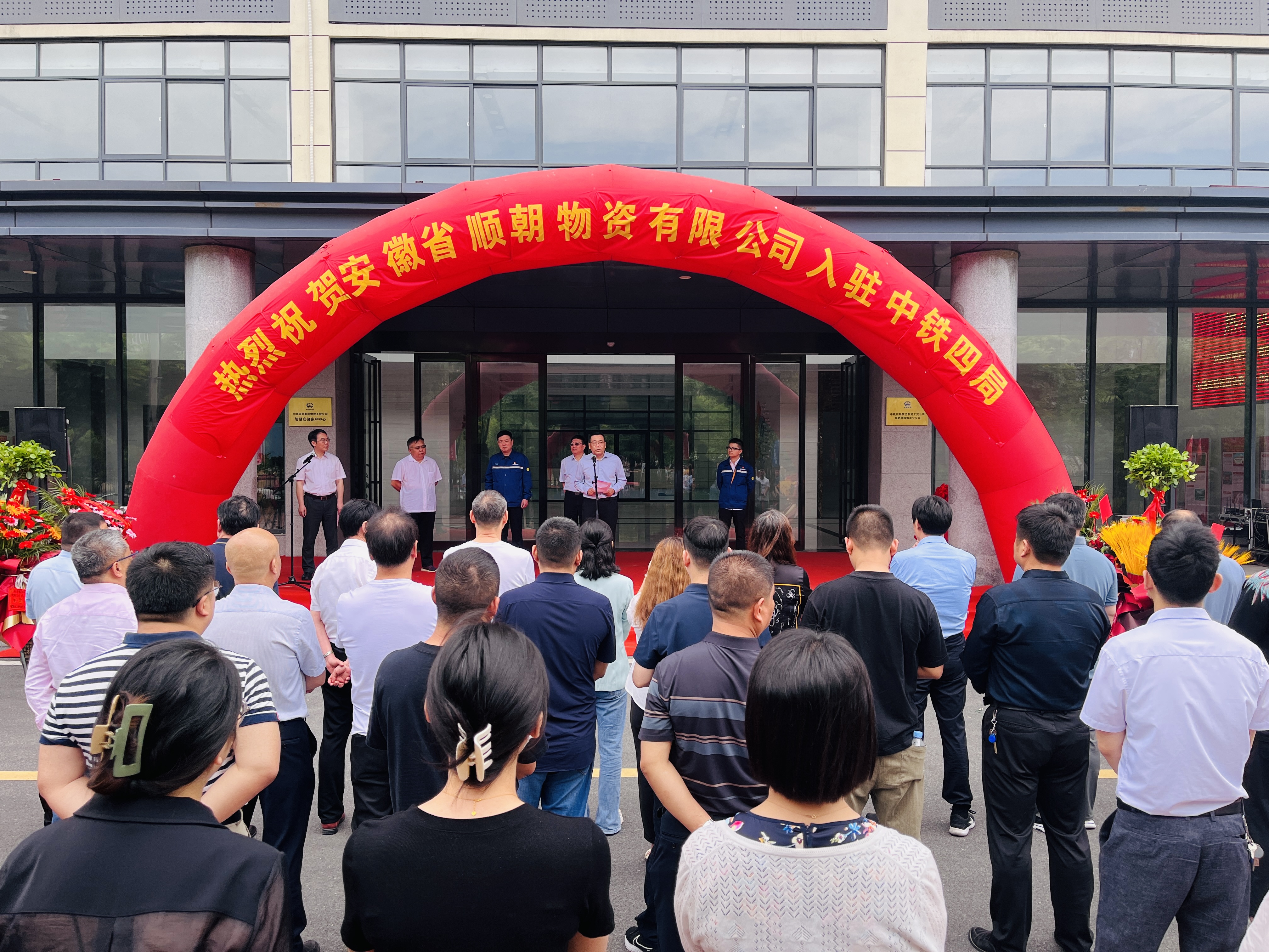 2023年5月20日,順朝公司舉行喬遷揭牌儀式,原徽商鋼材市場(chǎng)辦公點(diǎn)及相關(guān)業(yè)務(wù)部門正式入駐中鐵四局工貿(mào)集團(tuán)有限公司合肥分公司鋼材交易中心辦公。中鐵四局集團(tuán)物資工貿(mào)有限公司合肥分公司負(fù)責(zé)人、安徽省金屬材料流通協(xié)會(huì)會(huì)長(zhǎng)、長(zhǎng)江鋼鐵合肥公司總經(jīng)理、馬鋼合肥辦事處主任及部分公司重點(diǎn)客戶、鋼貿(mào)企業(yè)到場(chǎng)祝賀。