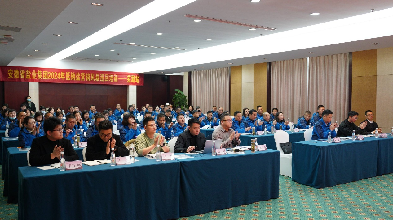 為進(jìn)一步提升全體員工的營(yíng)銷技能,提高低鈉鹽在市場(chǎng)供給中的比例和普及率, 3月28日上午,由安徽鹽業(yè)集團(tuán)牽頭組織的2024年低鈉鹽營(yíng)銷風(fēng)暴巡回培訓(xùn)——蕪湖站順利召開,蕪湖市縣公司共70余名職工參加培訓(xùn)。