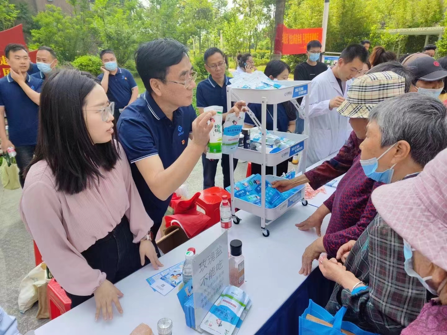 當天,全省各市縣鹽業(yè)公司在全省范圍內(nèi)聯(lián)合當?shù)亟?jīng)信局、衛(wèi)健委、市場監(jiān)管等部門,開展“防治碘缺乏病日”宣傳活動。在購物廣場、鄉(xiāng)村集鎮(zhèn)、社區(qū)等人流量大的地方,通過懸掛橫幅、制作展板、發(fā)放宣傳材料、現(xiàn)場咨詢、播放宣傳動畫等多種形式,廣泛深入地宣傳了碘缺乏對健康的危害以及防治碘缺乏病的重要性、持續(xù)性,引導消費者形成科學補碘的健康意識,樹立了科學用鹽意識,取得了良好的社會反響。