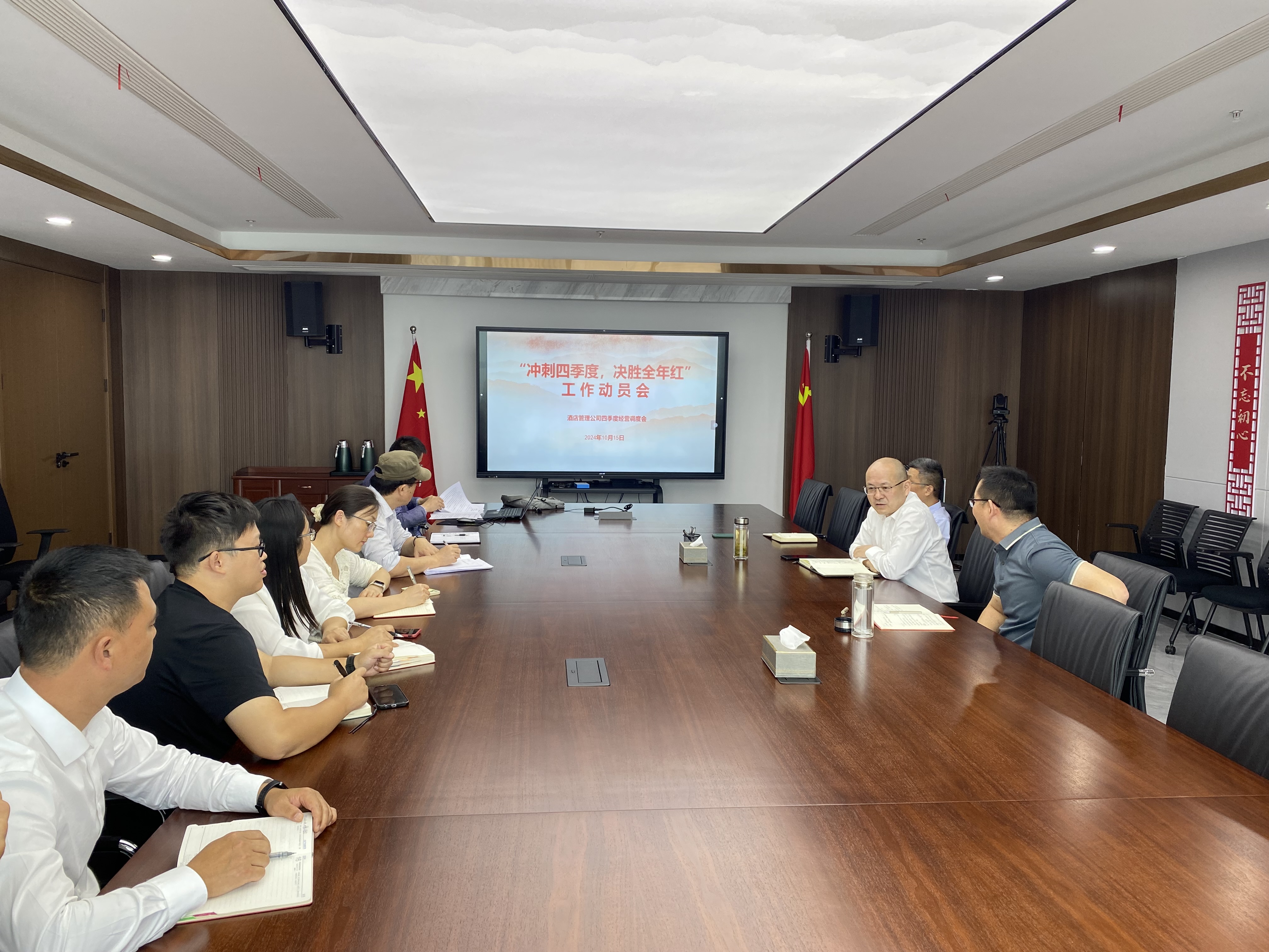 10月15日,酒店公司召開“沖刺四季度,決勝全年紅”工作動員會暨第四季度經(jīng)營調(diào)度會,公司全體員工參加會議。會議總結(jié)了前三季度公司各項經(jīng)營工作,分析當(dāng)前面臨的形勢和問題,并對四季度工作進行部署。